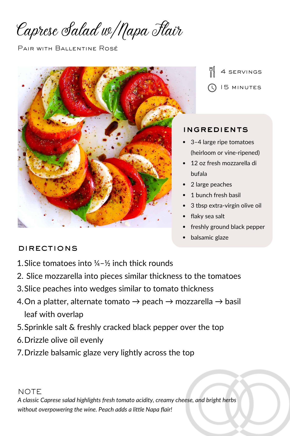We took a classic Caprese salad and added a little a little Napa twist with fresh peaches. It's a simple recipe that's packed with flavor.