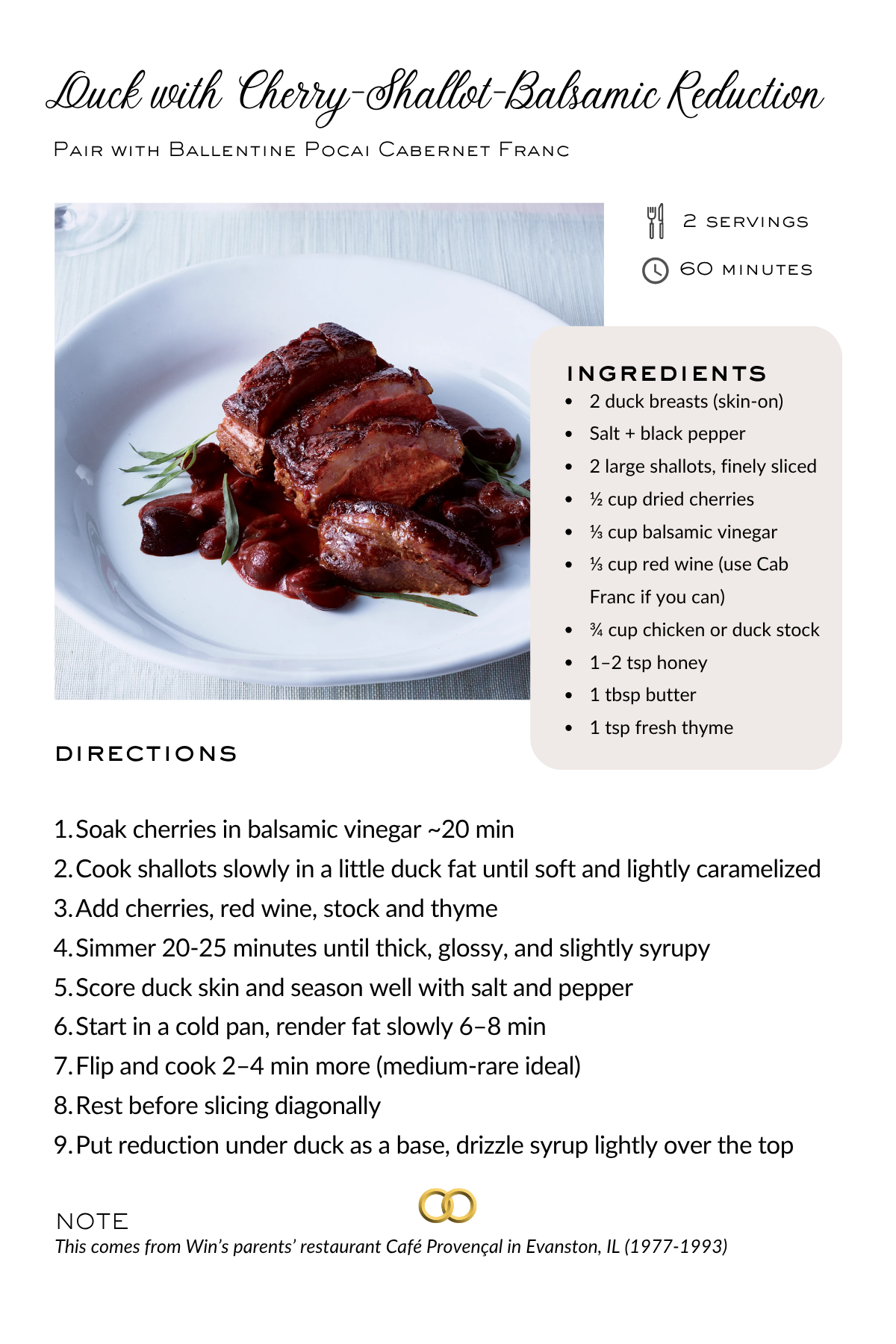 Serve with Ballentine Pocai Cabernet Franc.