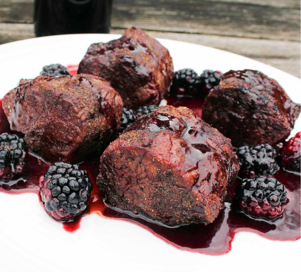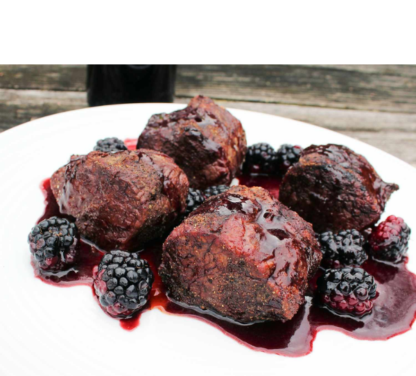 HERB CRUSTED VENISON WITH BLACKBERRY-RED WINE REDUCTION